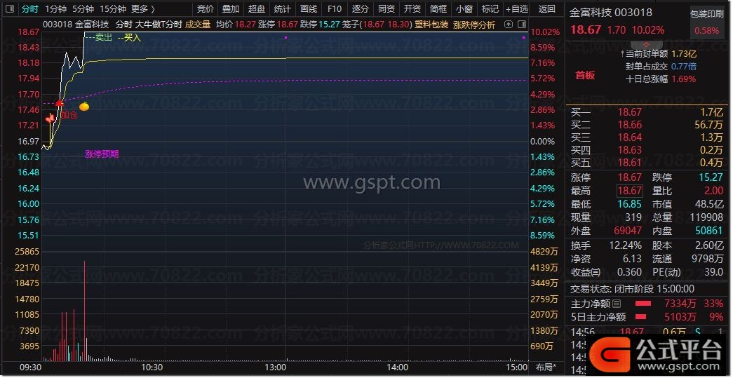 3. 出现分时突破文字提示时,适合短线追涨;