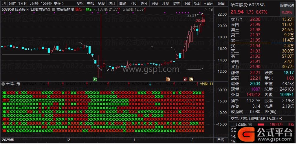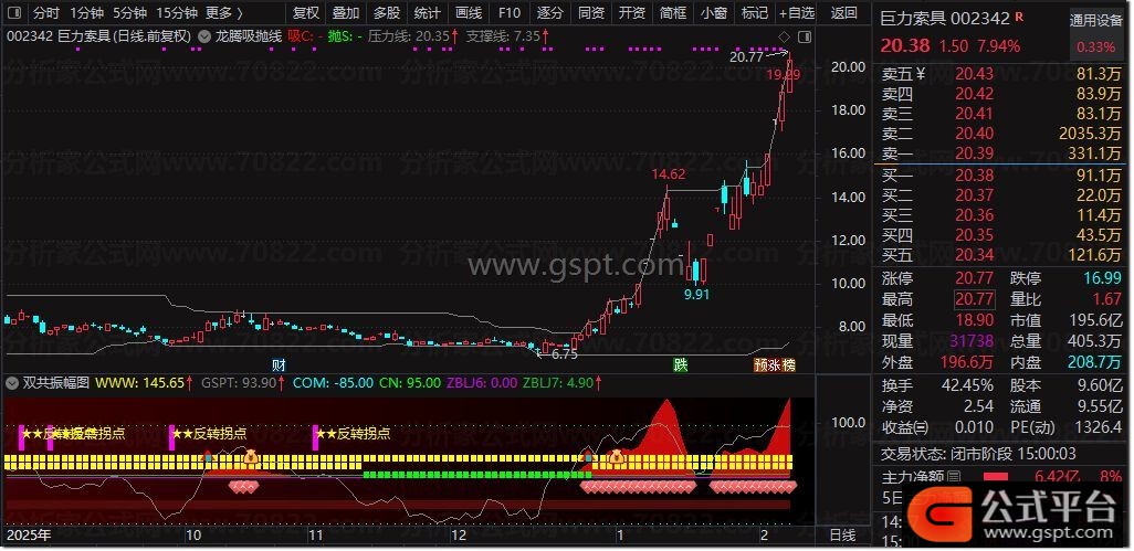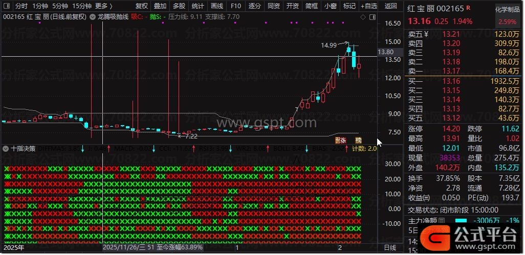 该指标适用于A股、期货等趋势性较强的市场,建议结合大盘环境与个股基本面综合判断,效果更佳。龙腾吸抛线作为一款捕捉高低点的黄金交易信号指标,能够辅助投资者进行主力资金跟踪与交易决策。
