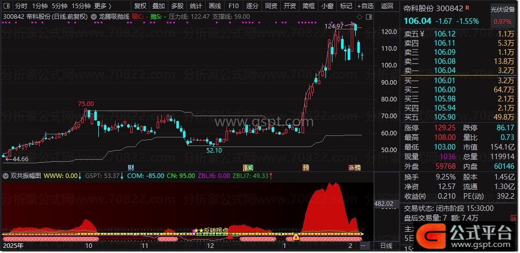 龙腾吸抛线是一款融合多周期高低点能量与市场情绪的智能交易指标。该股票技术指标通过EMA平滑处理500日、250日及90日高低价位,构建动态支撑压力中枢,并结合价格波动率与成交量情绪因子,采用SMA与EMA加权计算方式,精准识别主力资金低吸与高抛的关键区域。红色柱状图代表强势吸筹信号,绿色柱状图提示高位派发风险,辅以灰色支撑与压力参考线,帮助用户在股票交易中先人一步布局买卖点。