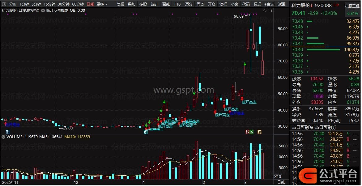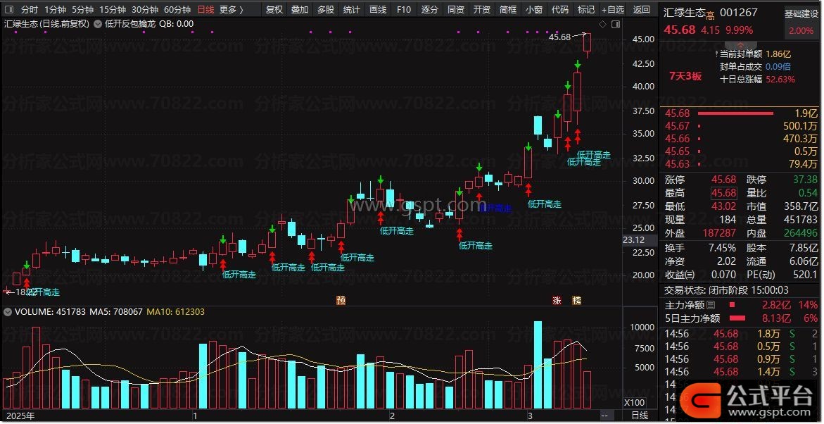 强势低开高走:=低开高走信号 AND C>MA(C,20) AND V>REF(V,1)*0.8;