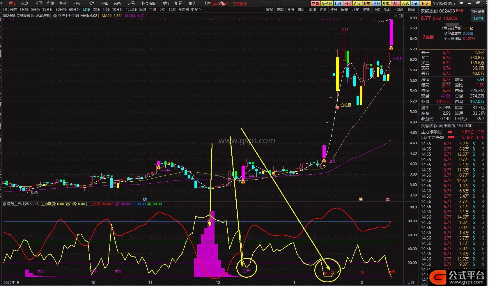 当指标出现主升浪字样 紧接着弹出妖字 就是绝佳的关注信号 可择优介入