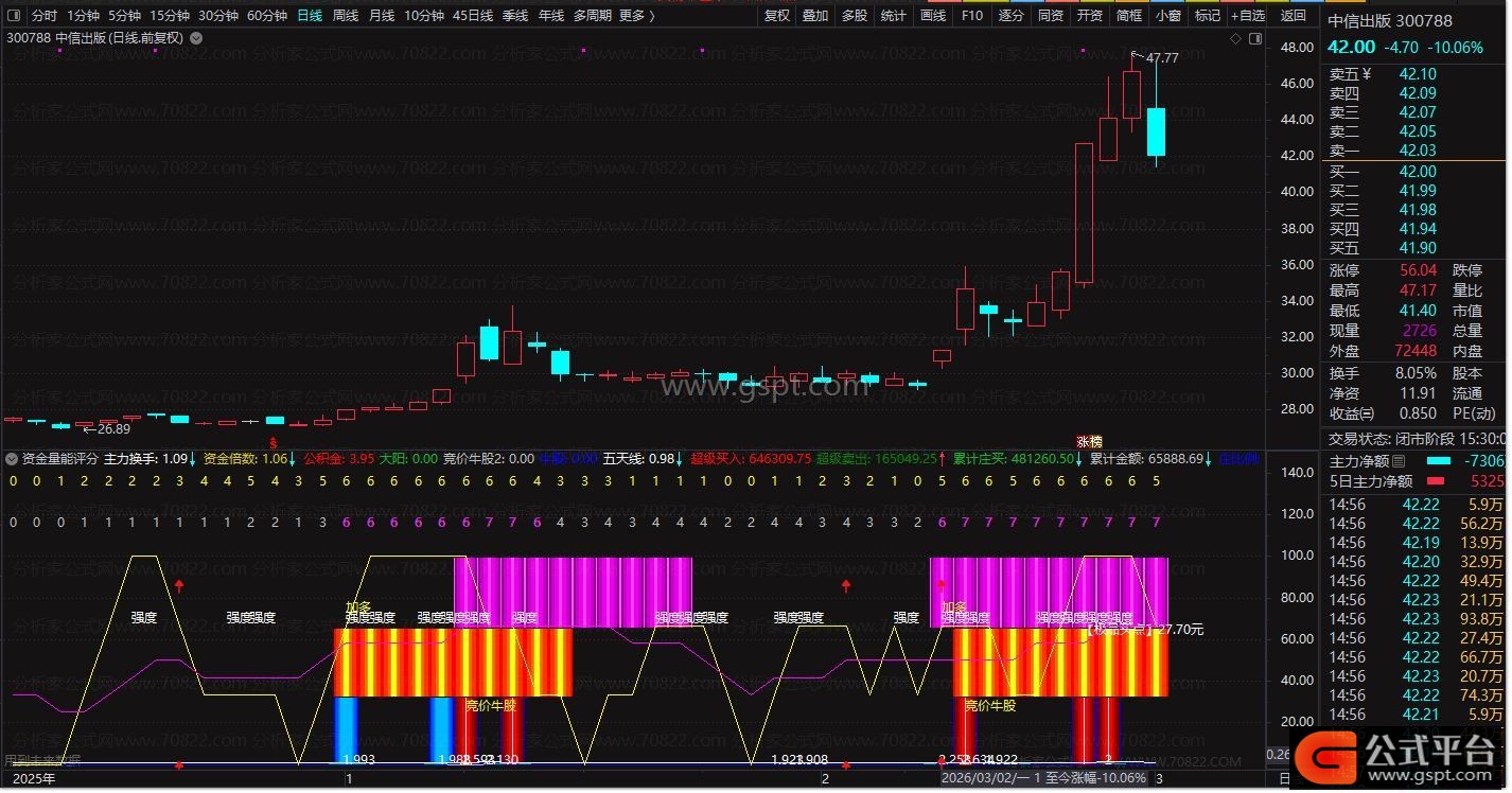 通达信资金量能评分指标,是帮助散户摆脱新手跟风困境、实现专业分析的核心股票指标公式,其核心是量能极值+价格突破+多指标共振+资金流测算,通过全维度整合和量化评分,精准筛选高胜率的牛股信号,适配通达信软件实战使用,满足散户日常选股、持仓分析的核心需求。