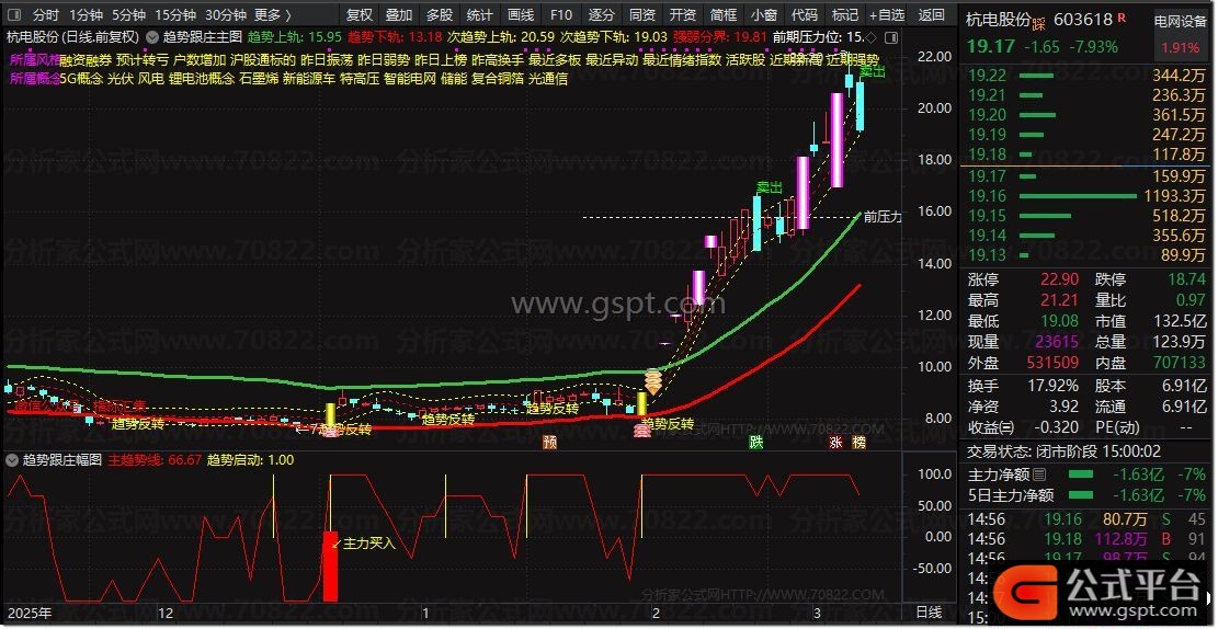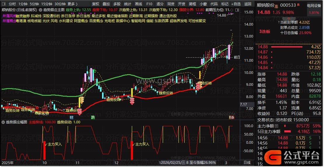 趋势中轨:=(趋势上轨+趋势下轨)/2,COLORBROWN;