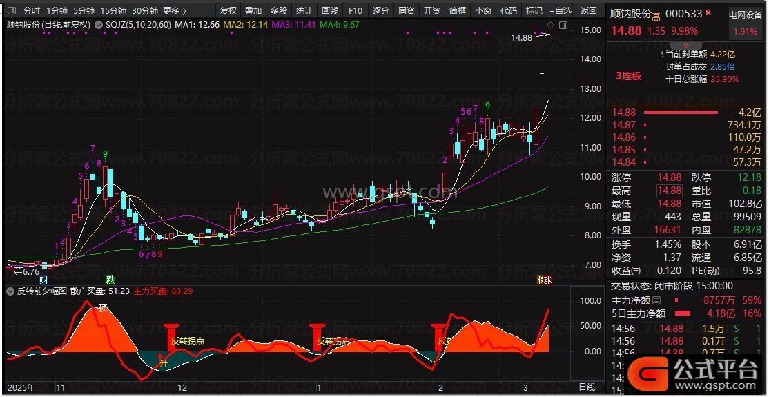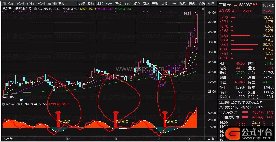 这款「反转前夕」指标融合KDJ、RSI、均线及资金流分析,专为捕捉A股底部反转行情设计,包含幅图指标与选股公式两大模块。