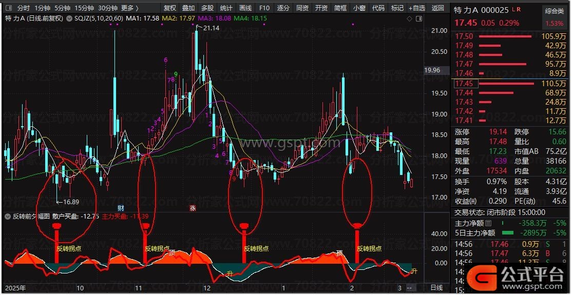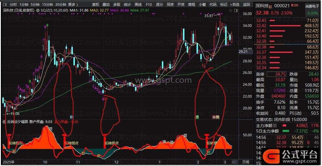 2. 选股公式可直接筛选出符合多维度反转条件的个股,结合量能放大效果更佳;