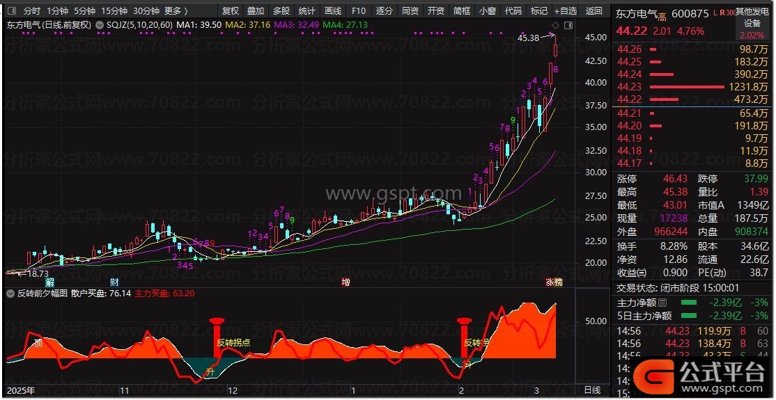 1. 幅图指标中,出现红色柱体+“反转拐点”提示,或“升”字+红色箭头(加速启动),代表反转信号确认;