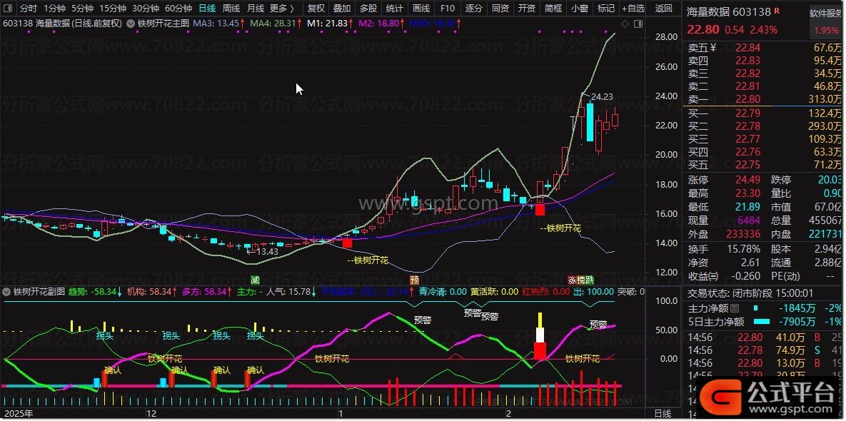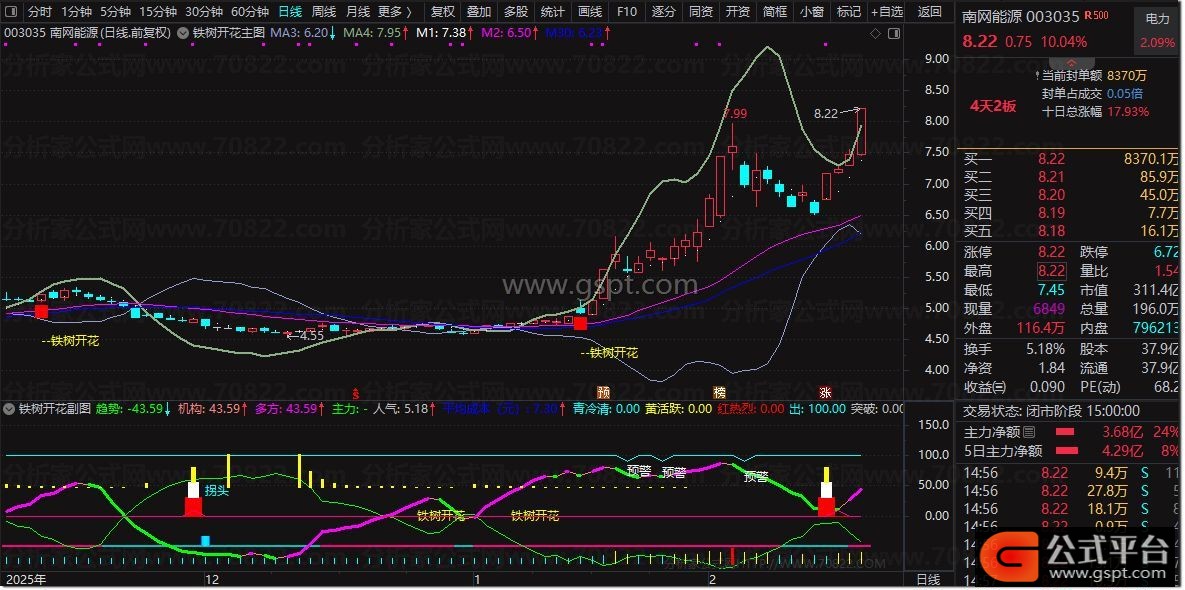 在股票交易中,均线粘合往往预示着市场即将选择方向,而“铁树开花”套装指标正是帮助投资者捕捉这一关键时刻的工具。该指标融合了主图与副图信号,当趋势线出现开花形态,并伴随“铁树开花”信号共振时,往往是值得关注的交易机会。以下为详细使用说明,结合股票公式指标的核心要点,帮助您更好地理解这一技术分析工具。