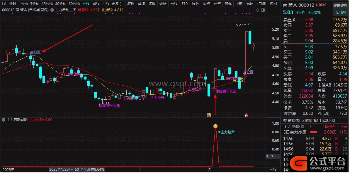 DRAWTEXT(FILTER(GSPT20,30),L*0.99,'持仓区'),COLOR00FF80;