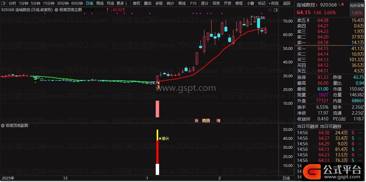 STICKLINE(买线< 卖线,CLOSE,OPEN,8/3,1),COLORCYAN;
