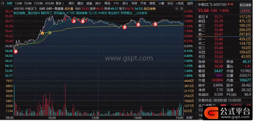 分时一致:=HHVBARS(CLOSE,gspt1)=0 AND gspt4;