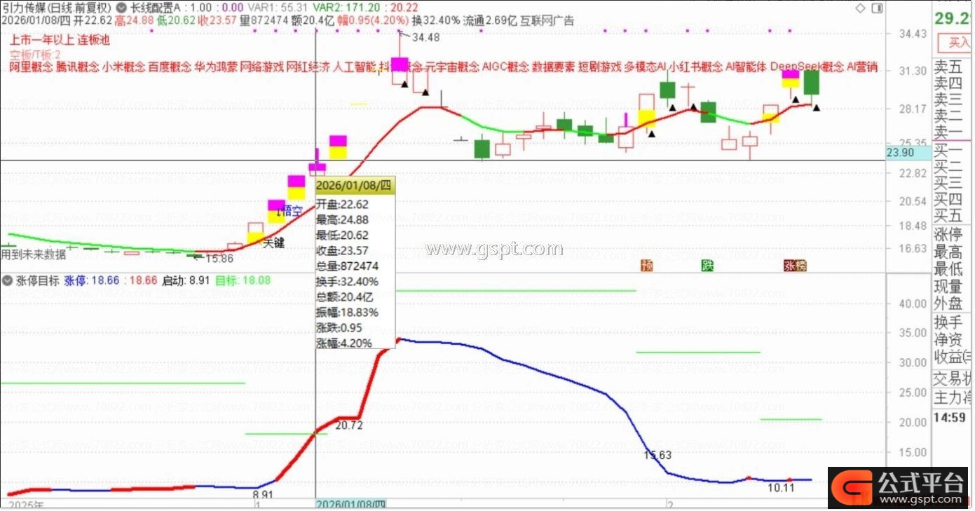 2026年1月8日603598张停线上穿目标线换挡后再次2连板