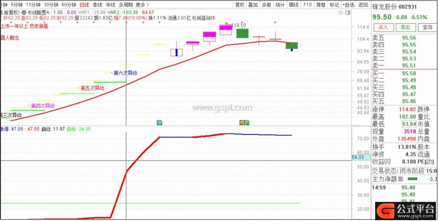需要注意的是,本指标仅仅是对连板个股涨停换挡还是刹车的一个参考指标,具体操作还需要结合公司基本面、技术面和政策面综合评估决策,不可单独依赖指标操作。