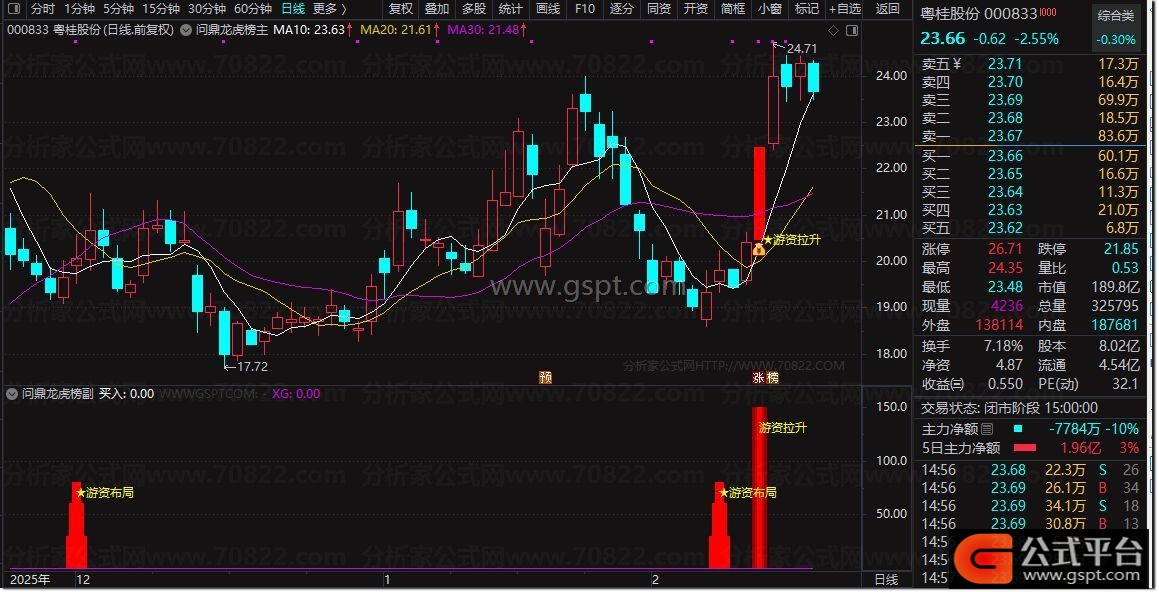 DRAWTEXT(gspt3>0,130,'游资拉升'),COLORYELLOW;