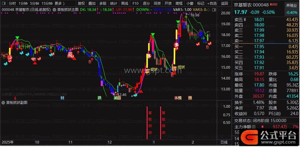 DRAWICON(gspt19=gspt17 AND REF(gspt19=gspt17,1)=0,LOW*0.98,30),COLORMAGENTA;