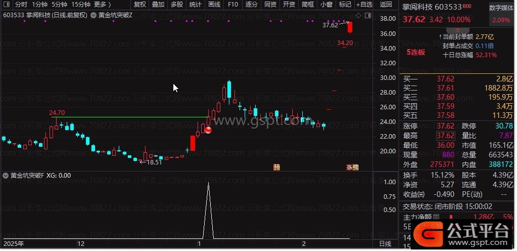 通达信黄金坑突破指标主图信号直观清晰,适用于实时盯盘与选股预警场景