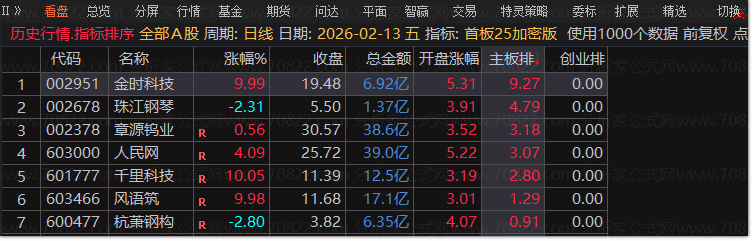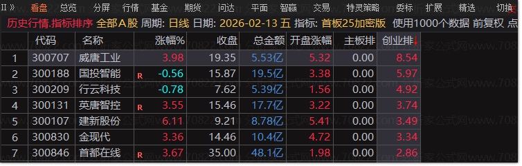 排序界面会同时显示两个数值结果,分别对应主板排序值和创业板排序值,采用从大到小降序排列后,用户只需重点关注第一个数值最大的标的即可;