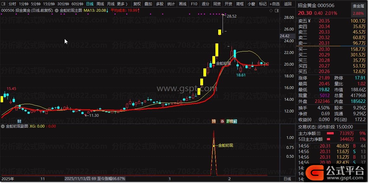 DRAWTEXT(gspt12,L,' 金蛇初现');