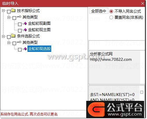 去ST:=NAMELIKE('ST')=0 AND NAMELIKE('*ST')=0 AND NAMELIKE('SST')=0 AND NAMELIKE('S*ST')=0;