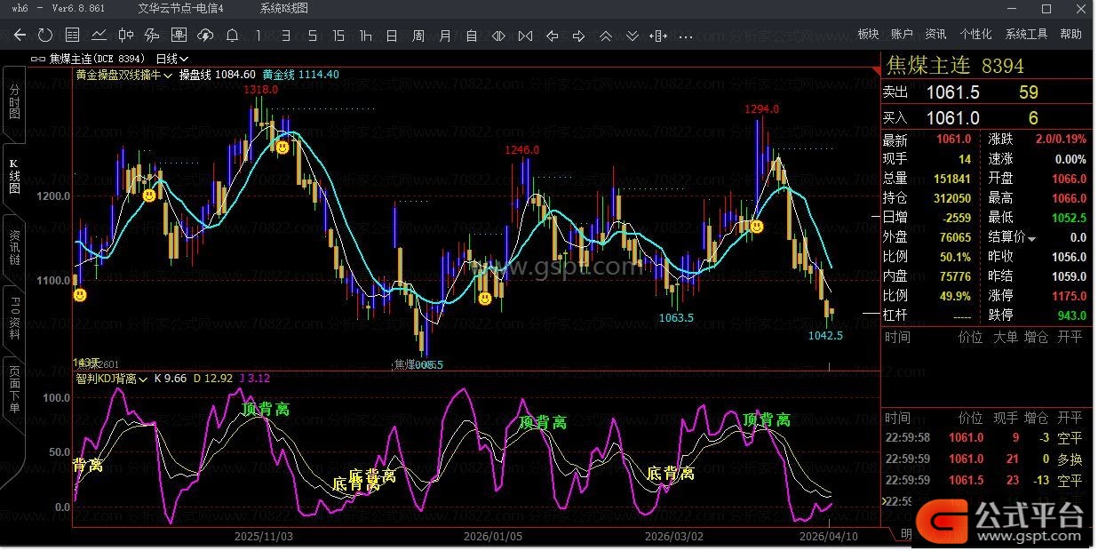 LL:=VALUEWHEN(CROSS(K,D),LLV(L,N2));//上次J绿柱期间合约最小值