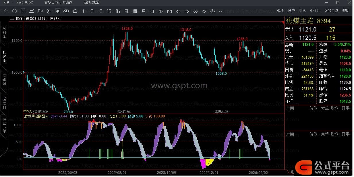 趋势1: EMA(MA(趋势,5),3),LINETHICK1,COLORA6B8C1;