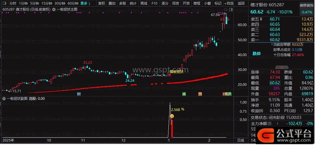 DRAWTEXT(REF(选股,1),0.8,' %'),COLORYELLOW;