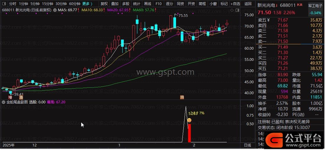 DRAWICON(REF(选股,1) AND 成绩>=1,0.68,5);