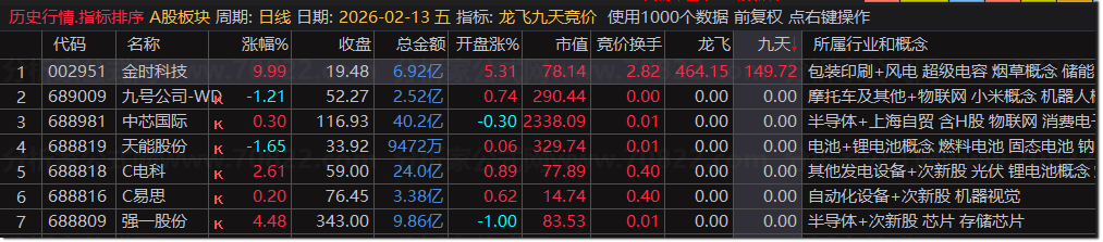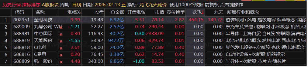 龙飞九天竞价排序指标,捉涨停后高开强势股,短线信号一目了然