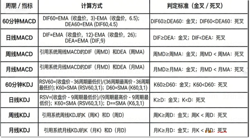 全周期共振条件(XG9):8个维度全部满足金叉(XGE=8),是股票全周期共振信号判定的核心标准;