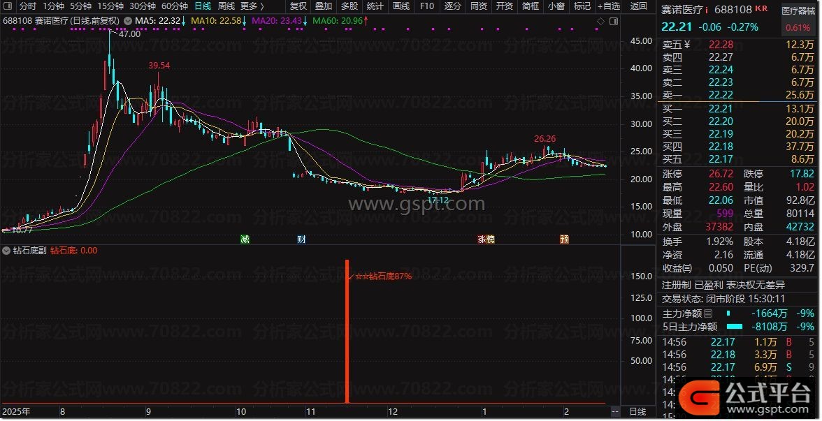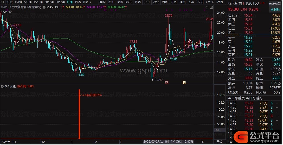 2. 信号解读:公式输出“钻石底”为1时,代表个股满足所有底部条件,出现高胜率买点;
