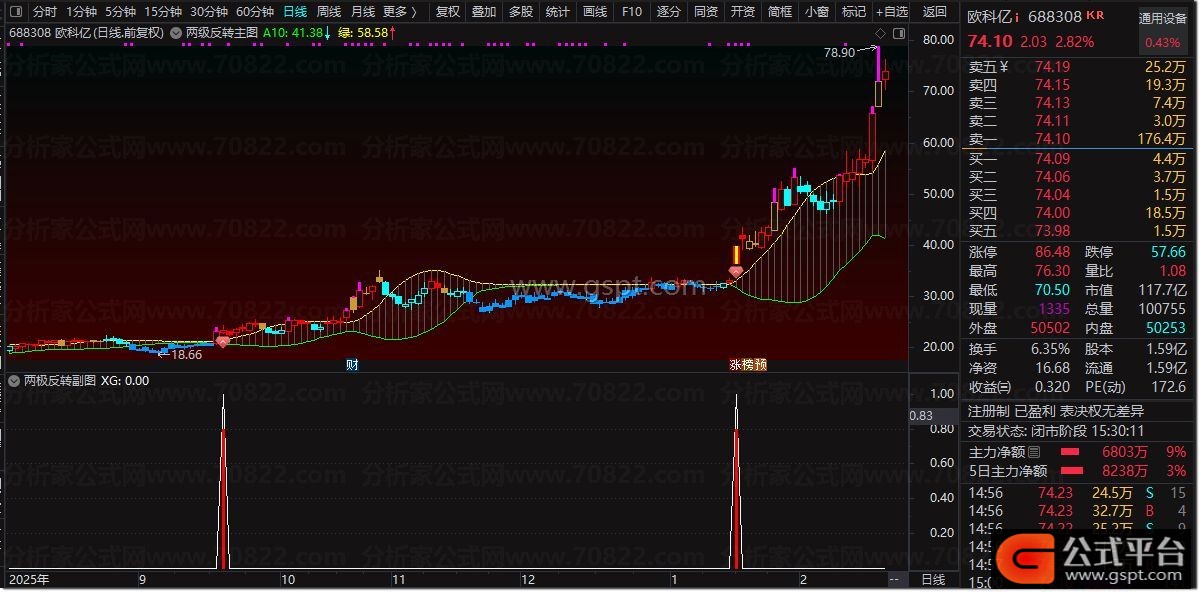 A6:=HHV(HHV(LOW,14),60);{核心算法}