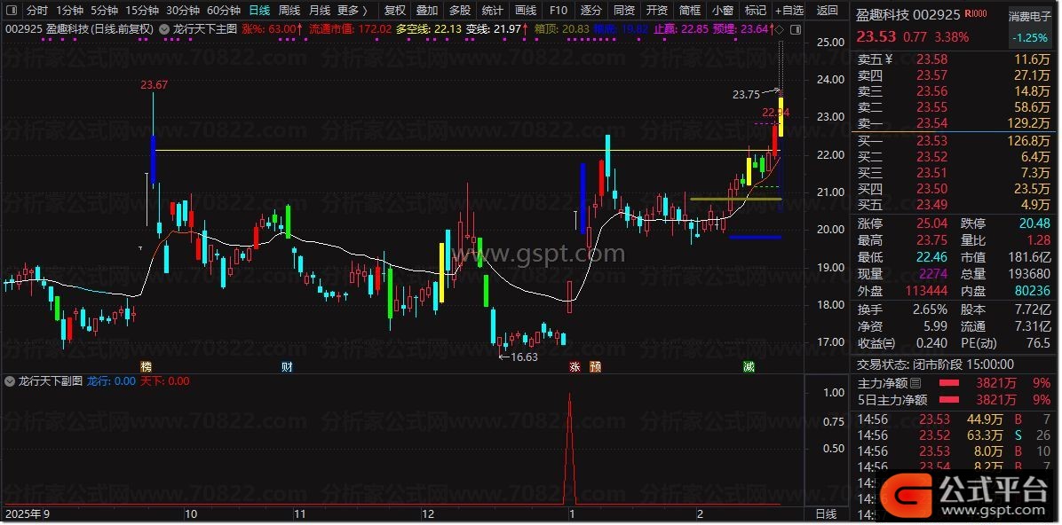 4、蓝色龙行和红色天下均为买入信号,既可手动选股也可设置预警。红色信号更为强悍,志在高远;蓝色信号相对较弱,适合见高止盈;