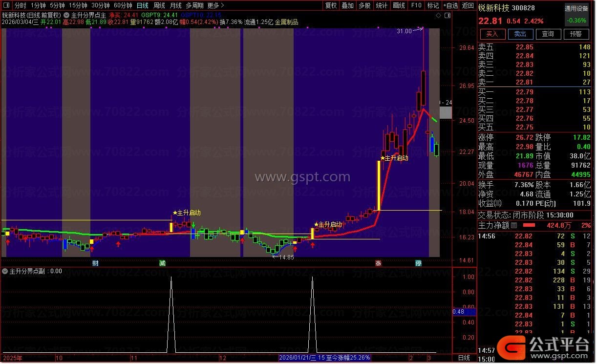 DRAWTEXT(FILTER(gspt15,3),gspt1*1.01,' ★主升启动'),COLOR00FFFF;