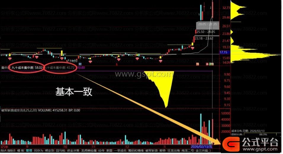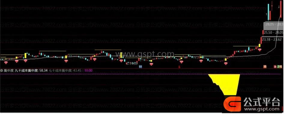 2、筹码超集中是判断主力是否已经吸足筹码的关键证据。它意味着大部分流通股都集中在了一个非常狭窄的价格区间内,市场抛压极小。