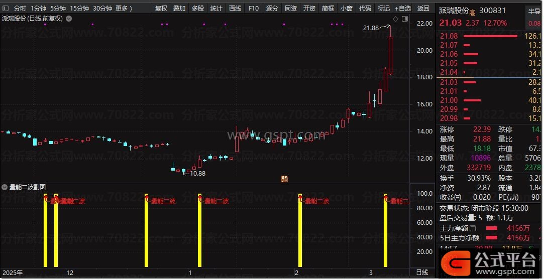 量能二波:=CROSS(gspt5,gspt3) AND gspt18>=20;