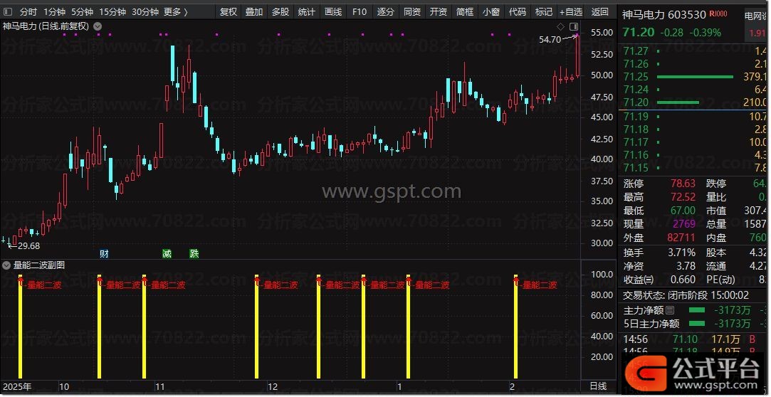 STICKLINE(量能二波,0,100,2,0),COLOR00FFFF;