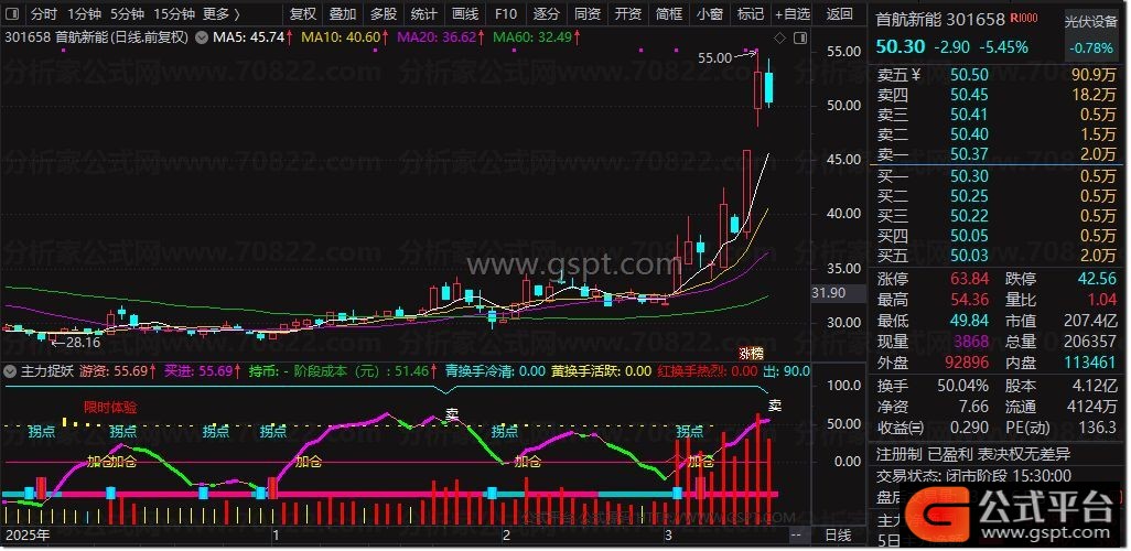 换手冷清:STICKLINE(换手< 3,-80,(换手+5-40)*2,0.0,0),COLORCYAN;