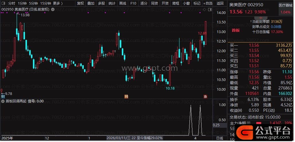 ZT:=(CLOSE>=ZTPRICE(REF(CLOSE,1),IF(FINANCE(3)=4 OR FINANCE(3)=3,0.2,0.1)));