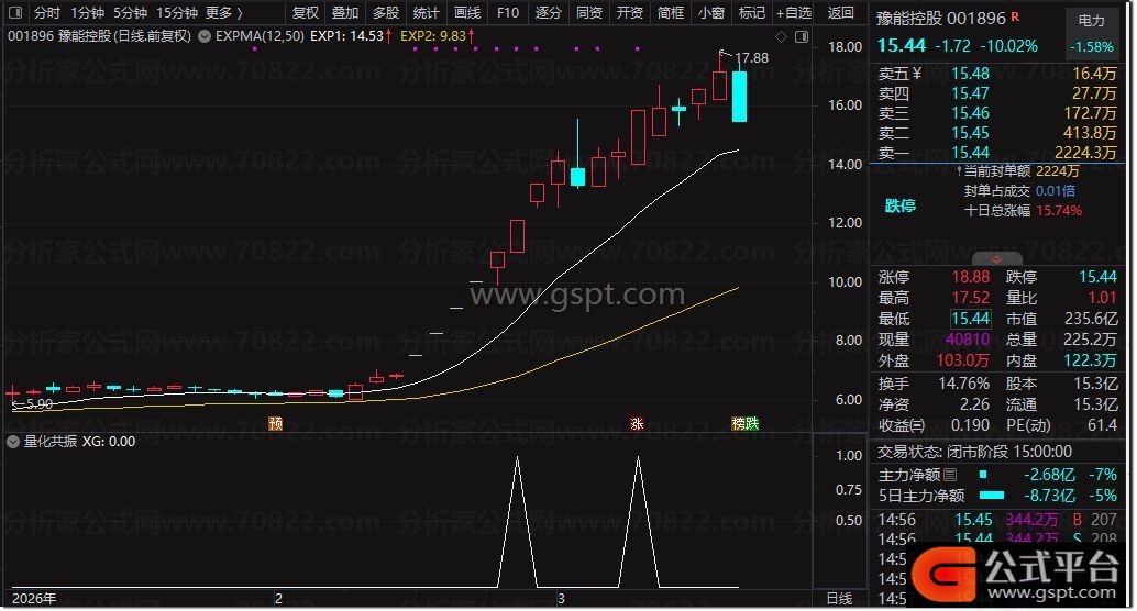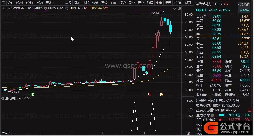 2. 选股条件:指标输出XG=1为达标信号,满足均线共振、量能强势、筹码集中三重核心条件;