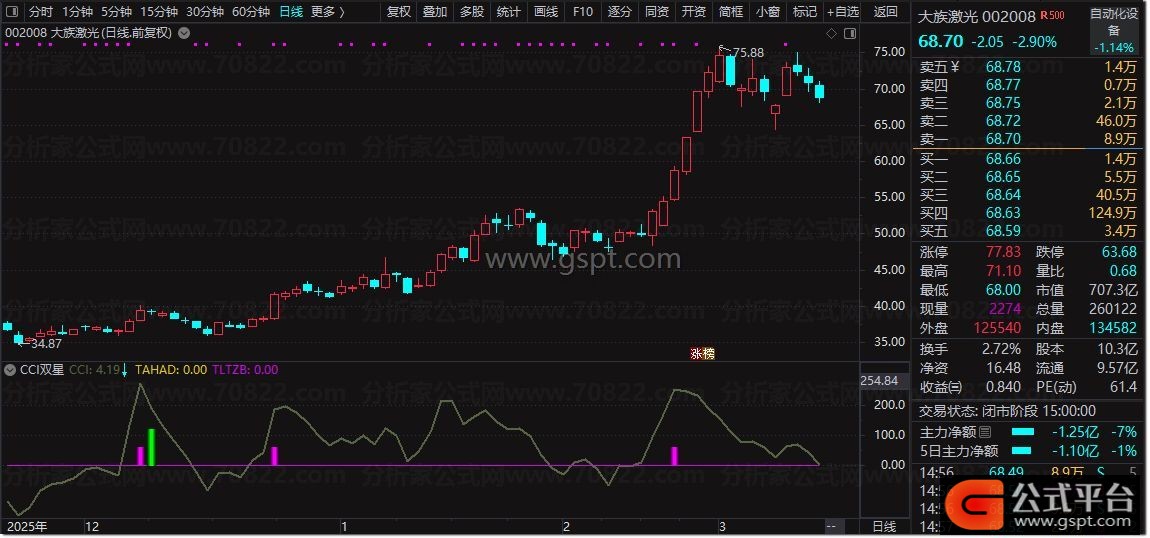 2. 绿色信号柱:CCI下穿200且连续两日回调,形成 超跌双星拐点 ,为短线低吸入场信号;