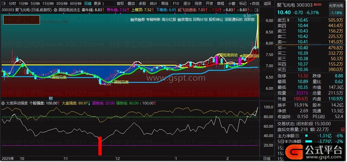 gsptD:=EMA(IF(CLOSE*1.35<=gsptA,gsptC*10,gsptC/10),3);