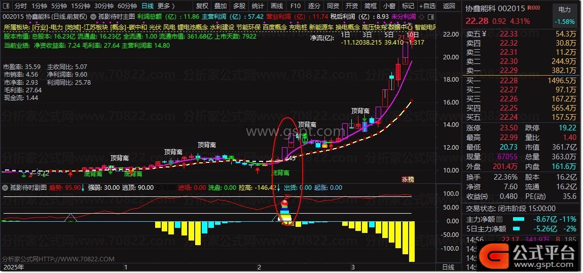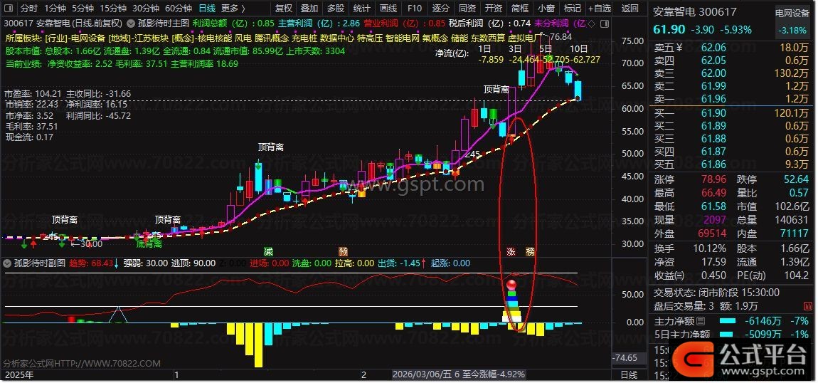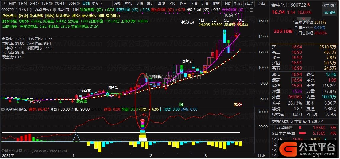 孤影待时是专为通达信打造的 主副图联动波段交易指标 ,融合K线形态研判、EMA均线、CCI、RSI、资金流、财务数据多重核心算法。主图直观展示股价趋势、资金流向、财务估值、板块信息,标注底背离/顶背离、45度拉升信号;副图精准识别趋势强弱、抄底信号、进场洗盘、拉高出货节点,一站式解决选股、买卖、风控需求。