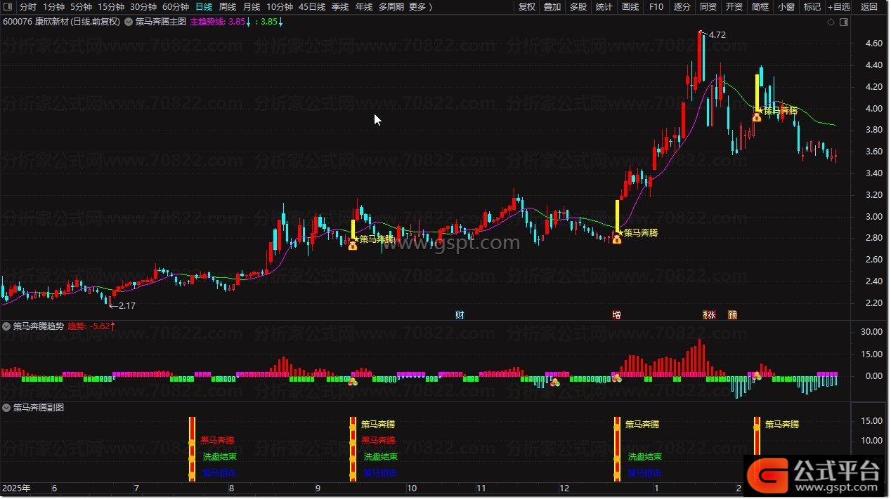 3. 选股公式 :盘中/盘后一键筛选符合起爆条件的个股,快速缩小选股范围,搭配主副图信号共振,提升操作胜率。