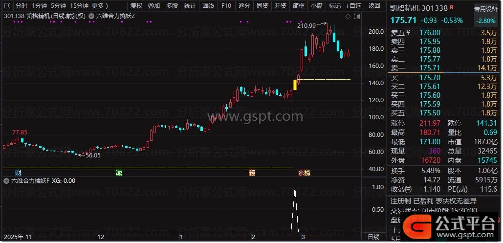 某平台卖690的【六维合力擒妖】指标:融合MACD\均线\RSI\KDJ\量增\量新高六重共振,筛选出可能即将启动的强势股!
