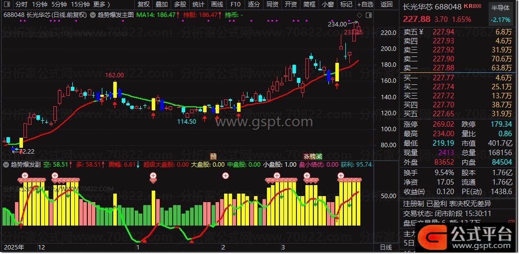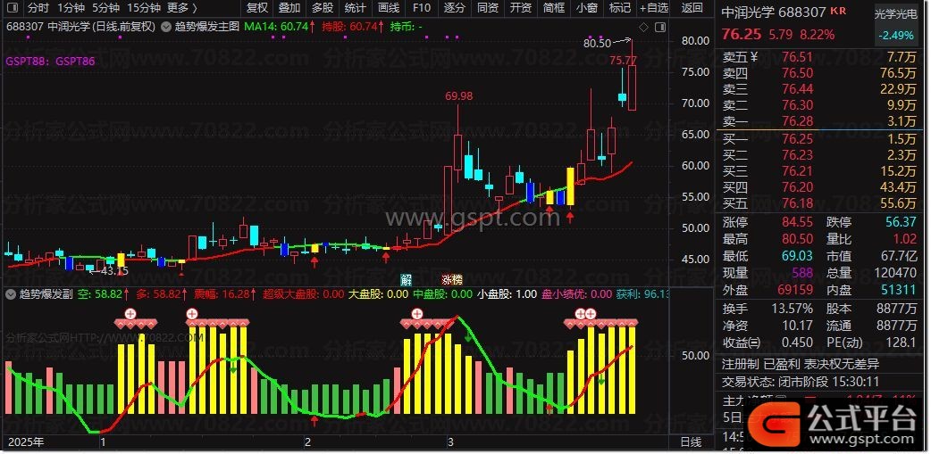 3、综合策略与指标价值:结合主图14日均线位置、大盘情绪变化实施仓位管理,可进一步提升投资胜率。主副图指标形成互补关系,共同构建逻辑严密的趋势分析体系。建议投资者深入理解指标背后的技术原理,而非简单套用信号,此为掌握股票公式指标精髓的关键。