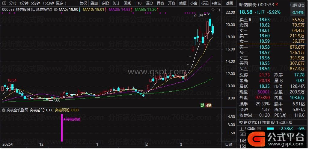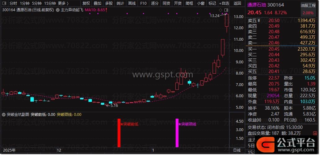 3、信号标识:在副图界面中,红柱代表突破前低信号,紫柱则对应突破颈线信号,二者清晰区分,便于投资者快速识别。这种信号标识设计,让股票买卖点指标判断更为直观。