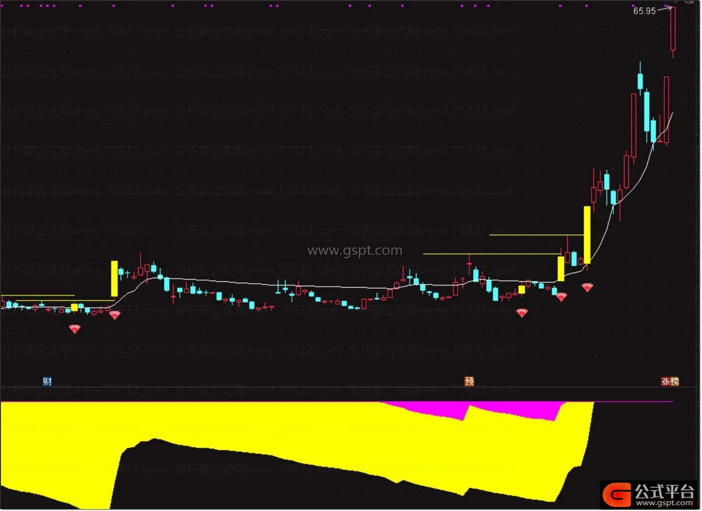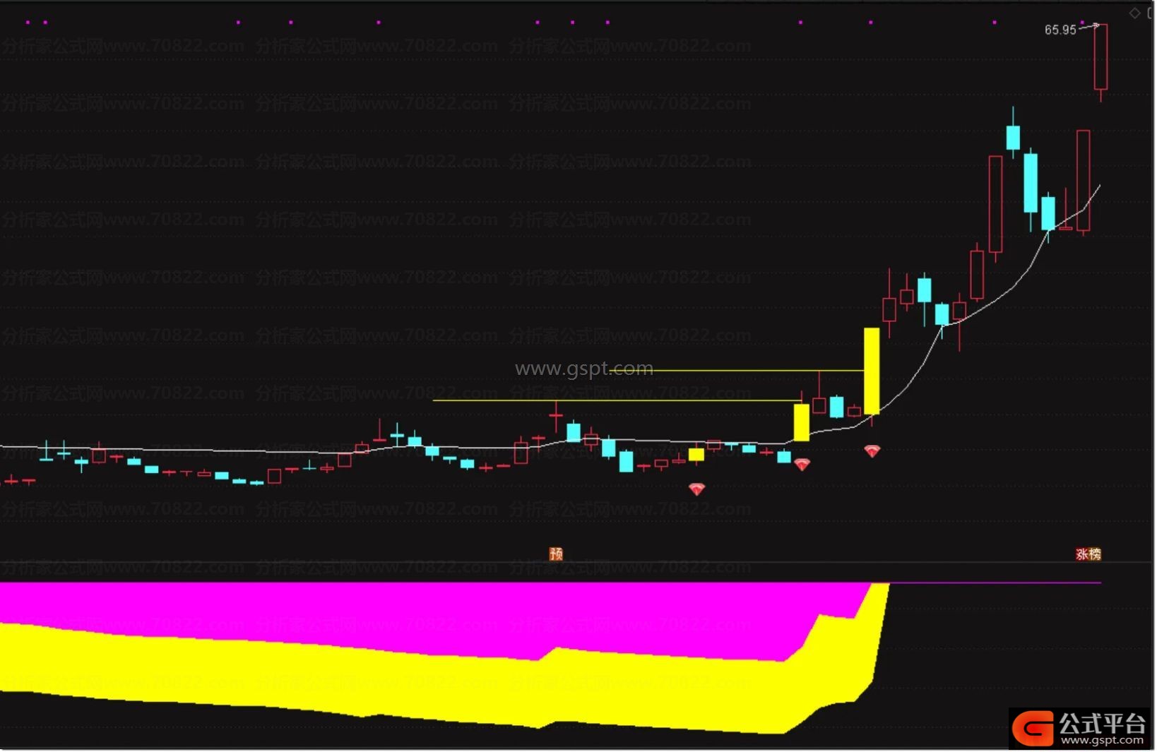 副图出现粉色 / 黄色彩带 → 筹码集中,主力控盘