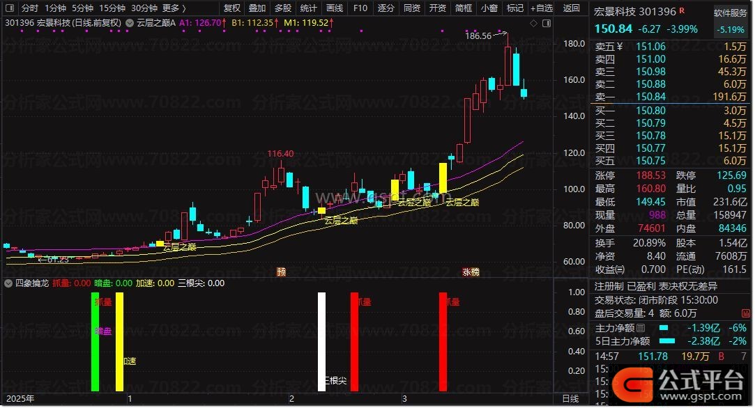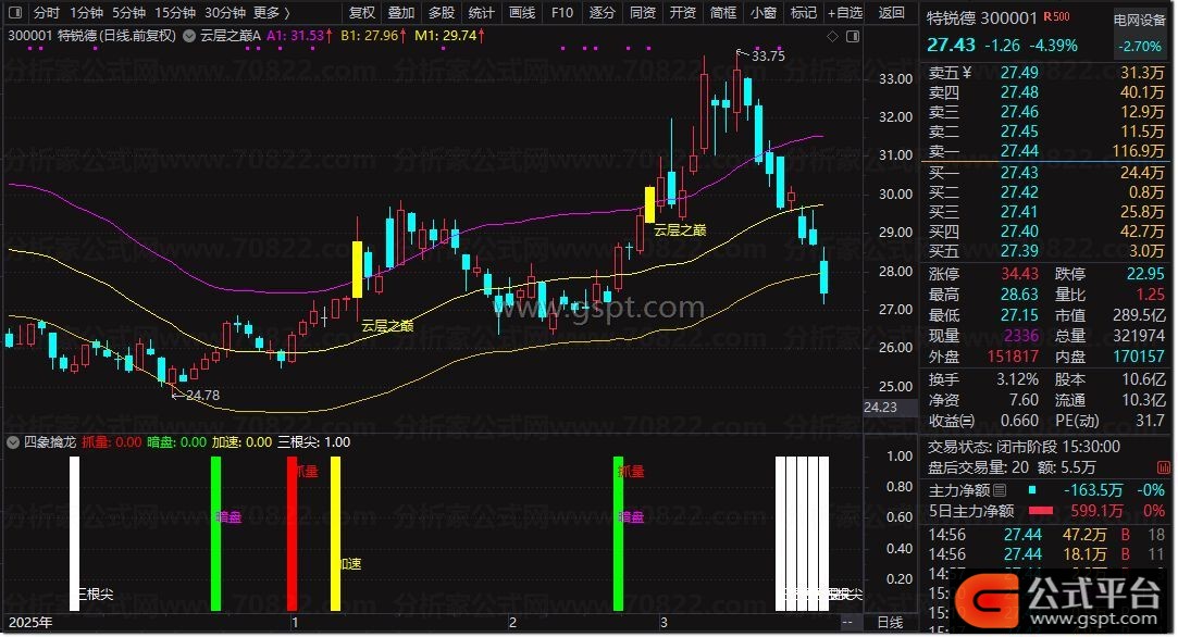 盘中出现红色“抓量”且量比大于1.2时,为激进买点;绿色“暗盘”连续出现可分批建仓;黄色“加速”配合均线多头排列时加仓;白色“三根尖”出现于低位时,往往是黄金坑右侧交易机会。结合大盘环境与板块热点,胜率更佳。