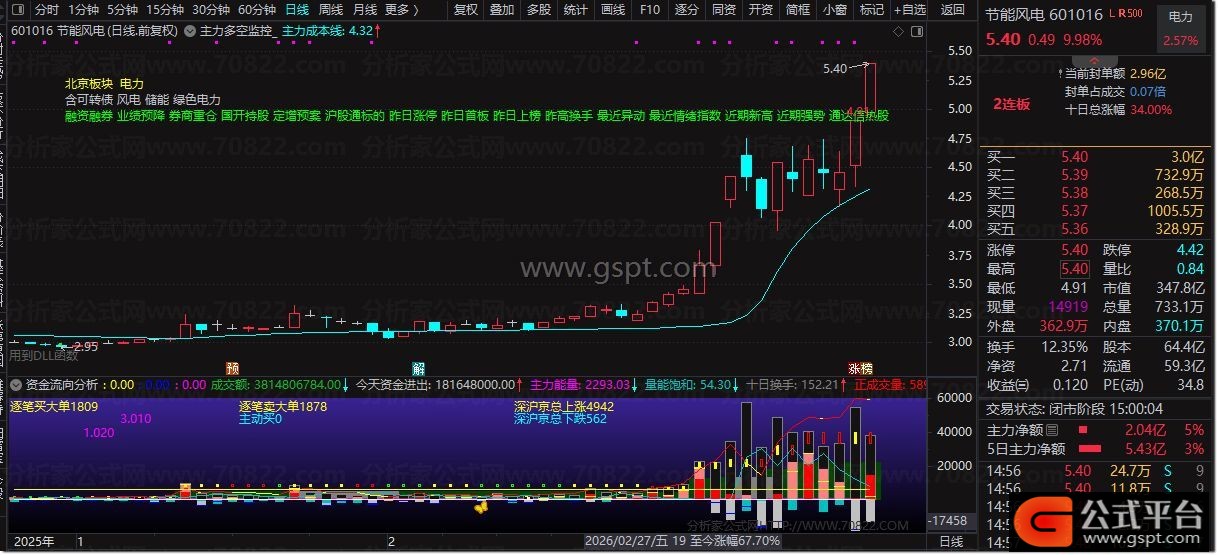 4. 抓买卖:地量选图标出现为低吸信号,今日资金进出为正且主力能量抬升,可择机入场。