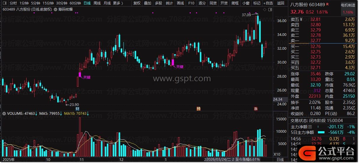 2. 核心条件共振:股价突破筹码压力、站稳24日上升均线、放量大涨,主力拉升信号明确;