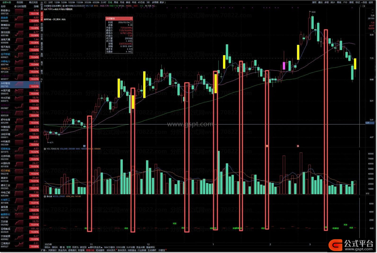主力操盘不是 “一下子涨 / 跌”,而是 “先慢慢加速,再减速,最后反转”—— 急动度能捕捉到这个 “动力变化” 的过程,让你看懂主力是在 “真拉升” 还是 “诱多”,这是普通指标做不到的。